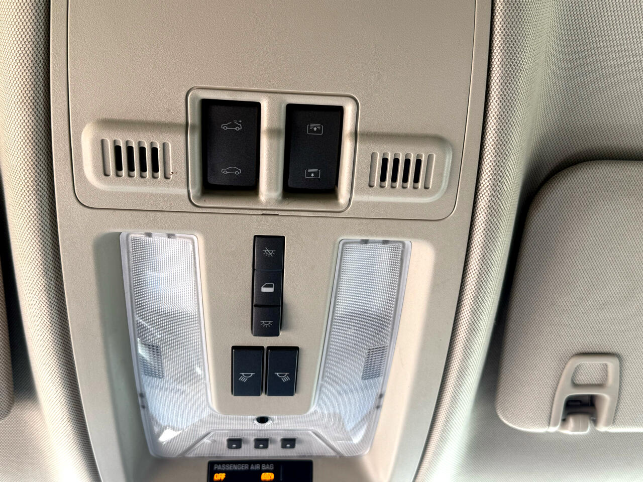 Console, overhead with sunroof switch (if equipped), Universal Home Remote (if equipped) and Ultrasonic Front and Rear Parking Assist indicator (if equipped)